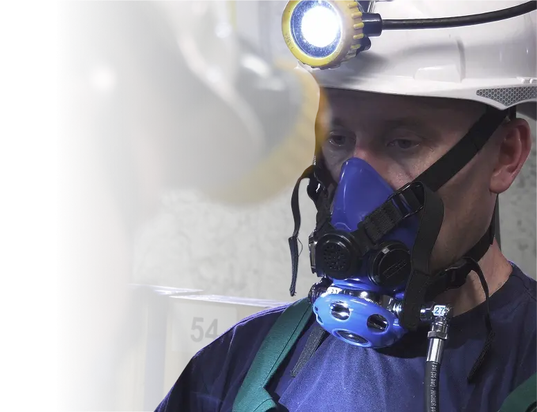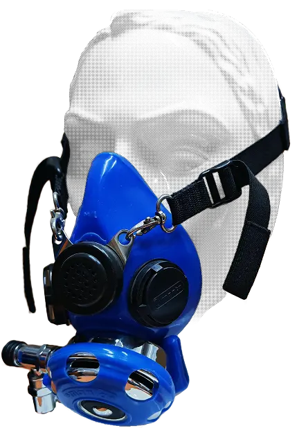 Aparat wężowy MANTA to dwustopniowy układ redukcji (I i II stopień rozdzielone), który dostarcza powietrze do oddychania przez półmaskę obejmującą nos i usta.